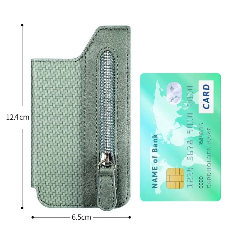 Credit Card Holder For Cell Phone adopts a practical design, which can store about 6 cards and some money, with a small window to store coins and keys.